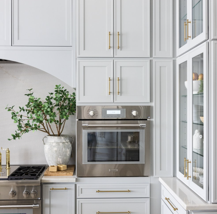 Common materials for painted cabinets include maple wood or MDF, as they provide a sleek, smooth surface perfect for painting. You’ll often see painted cabinets in homes featuring a contemporary and traditional style - AKA, transitional interiors.