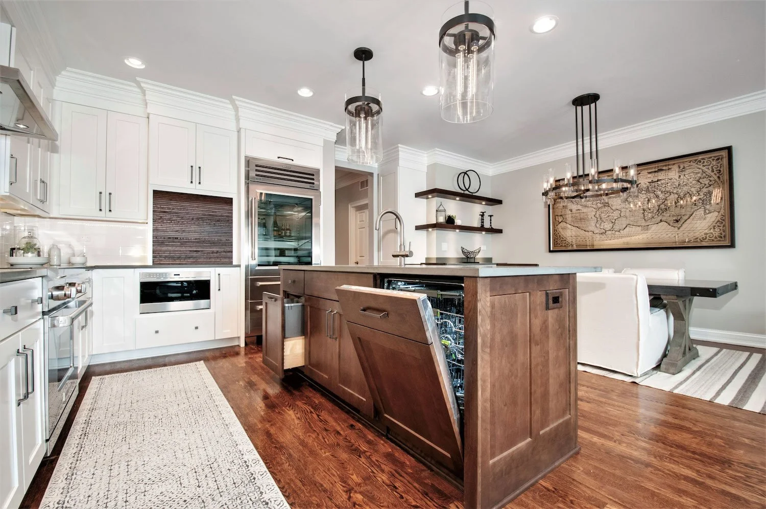 Style anchors are key in blended kitchen designs. An anchor serves as a dominant design choice throughout your kitchen layout, holding the room’s design together.